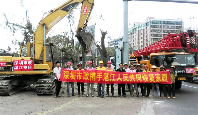 2015年10月4日,強(qiáng)臺(tái)風(fēng)“彩虹”從粵西登錄,夾雜著狂風(fēng)暴雨,導(dǎo)致湛江市區(qū)一片狼藉,10月6日晚23點(diǎn)左右,接深圳市住建系統(tǒng)領(lǐng)導(dǎo)通知指示,市政總積極響應(yīng),公司領(lǐng)導(dǎo)立刻做出安排,瀝青公司出動(dòng)CAT挖機(jī)一臺(tái),拖車一臺(tái),安裝公司出動(dòng)CAT挖機(jī)一臺(tái),于7日凌晨1:30分左右,從光明及石巖出發(fā),日夜兼程,第一時(shí)間到達(dá)指定集合地點(diǎn),并與當(dāng)?shù)貙硬块T城市綜合管理局相關(guān)現(xiàn)場負(fù)責(zé)人員取得聯(lián)系,等候統(tǒng)一安排。
