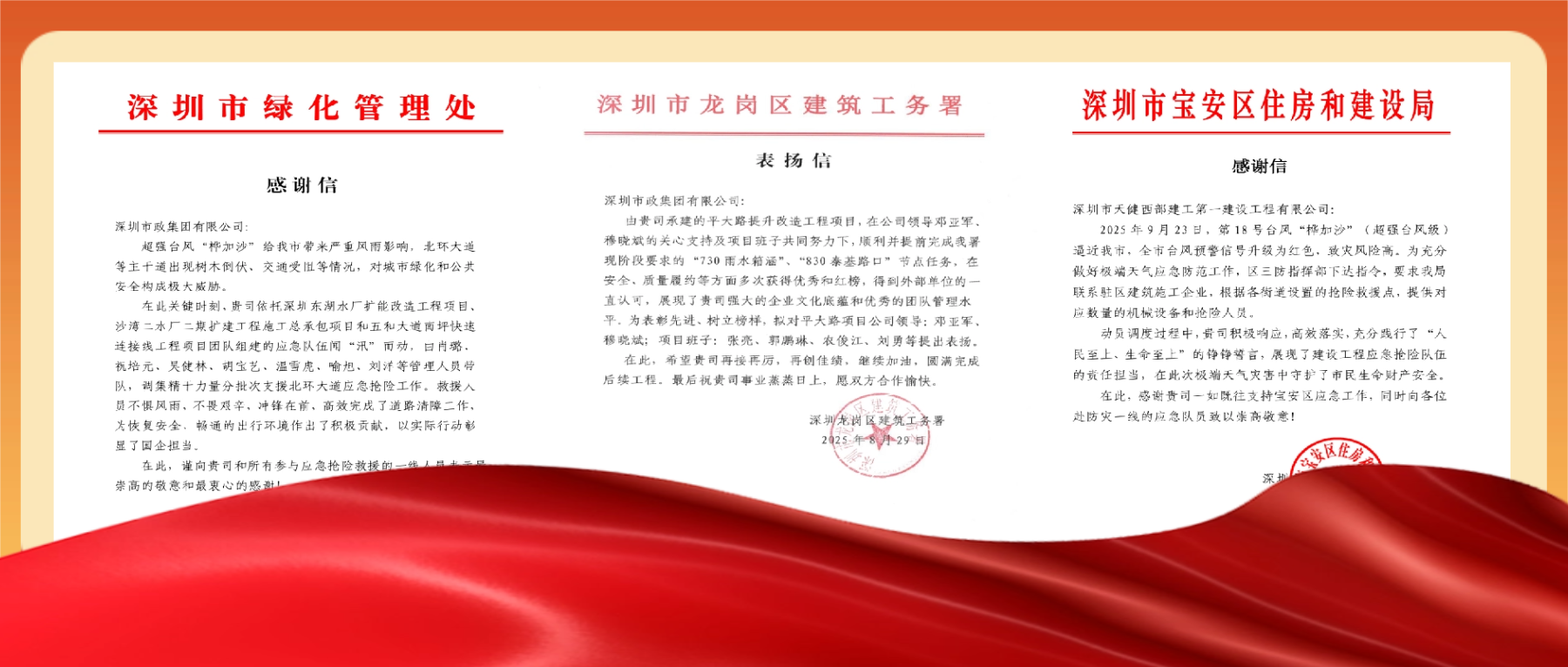連獲認可!市政集團收到多封表揚信、感謝信