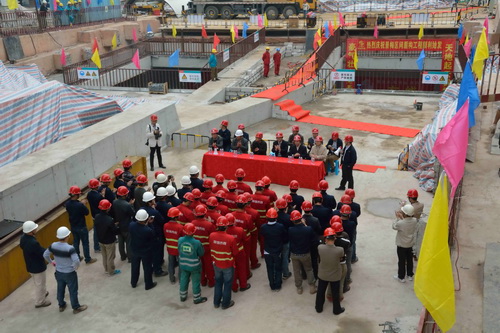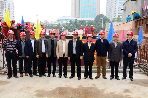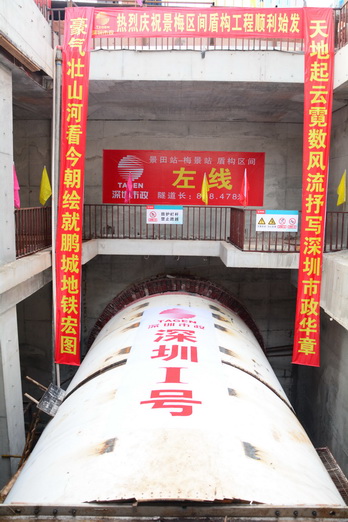 2014年12月10日上午,集團公司總經(jīng)理宋揚、黨委副書記童慶火、監(jiān)事會主席肖杰安、地鐵9號線公司王文和部長、東部監(jiān)理李建軍總監(jiān)等參加了地鐵項目景梅區(qū)間左線盾構(gòu)始發(fā)儀式。始發(fā)儀式上,集團副總經(jīng)理尹劍輝、地鐵公司業(yè)主代表王文和分別進行致辭,并勉勵項目部全體員工要克服困難,確?!?.30”如期洞通。10點18分,隨著集團總經(jīng)理宋揚鄭重宣布:“深圳1號”盾構(gòu)—始發(fā)?,F(xiàn)場頓時鞭炮齊鳴,掌聲雷動,“深圳Ⅰ號”盾構(gòu)在隆隆的轟鳴聲中緩緩前行,正式開始掘進。