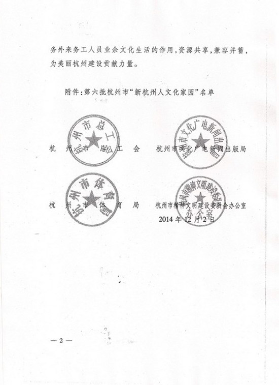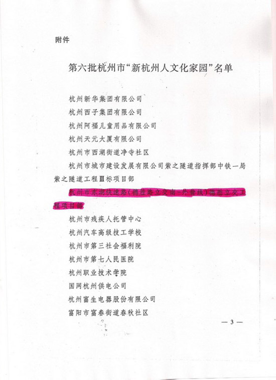 2014年12月,天健集團上海公司杭州項目部傳來喜訊,《關(guān)于命名第六批新杭州人文化家園的通知》中杭州市東湖—德勝立交工程項目部榮獲新一批杭州市“新杭州人文化家園”名單。