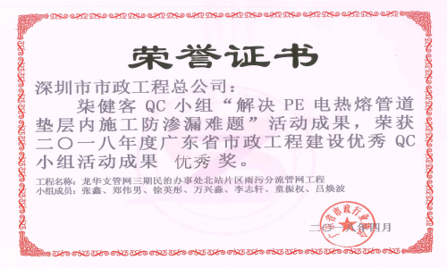 優(yōu)秀獎(jiǎng):《解決PE電熱熔管道墊層內(nèi)施工防滲漏難題》