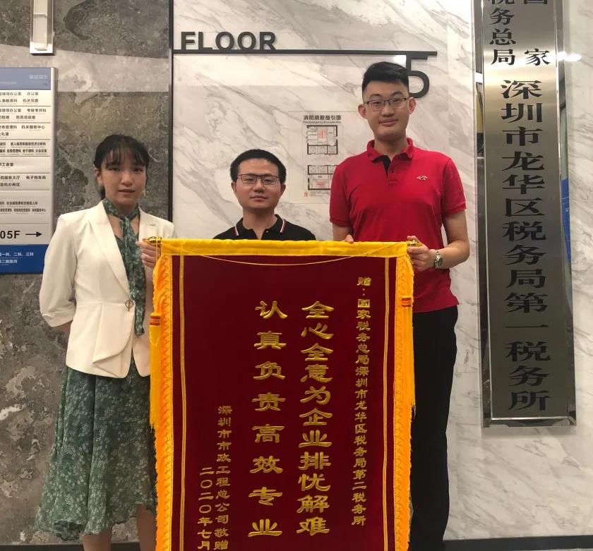為感謝主管稅務(wù)機(jī)關(guān)一直對(duì)市政總公司的支持與幫助,市政總公司于7月29日前往國(guó)家稅務(wù)局深圳市龍華區(qū)稅務(wù)局第二稅務(wù)所,贈(zèng)送一面繡有“認(rèn)真負(fù)責(zé)高效專業(yè),全心全意為企業(yè)排憂解難”的錦旗。