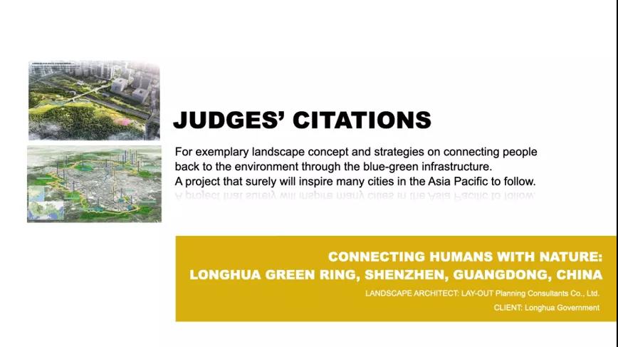 IFLA是受聯(lián)合國教科文組織指導(dǎo)的國際風(fēng)景園林行業(yè)影響力最大的國際學(xué)術(shù)最高組織。龍華環(huán)城綠道項目受到了IFLA評委會的高度稱贊,評委會在獲獎評語中表示:項目利用藍(lán)綠生態(tài)空間,以堪稱典范的概念和策略,重新連接人與自然,讓高密度城市的人們回歸自然環(huán)境,龍華環(huán)城綠道一定會啟發(fā)更多亞太地區(qū)的城市來進(jìn)行效仿。