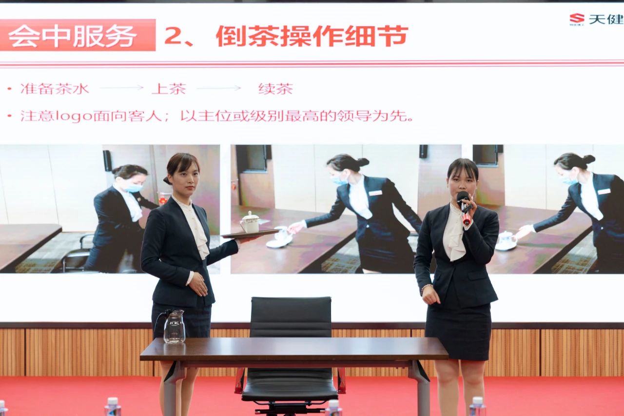 培訓(xùn)中,資深客戶服務(wù)禮儀培訓(xùn)師蔡蘭老師結(jié)合企業(yè)發(fā)展需要,重點(diǎn)對(duì)工作人員儀容禮儀,標(biāo)準(zhǔn)站姿、走姿、蹲姿、坐姿,引導(dǎo)手勢(shì)練習(xí),以及引領(lǐng)禮儀、乘車禮儀、會(huì)議座次安排、中餐宴請(qǐng)禮儀等政務(wù)禮儀內(nèi)容進(jìn)行了培訓(xùn)