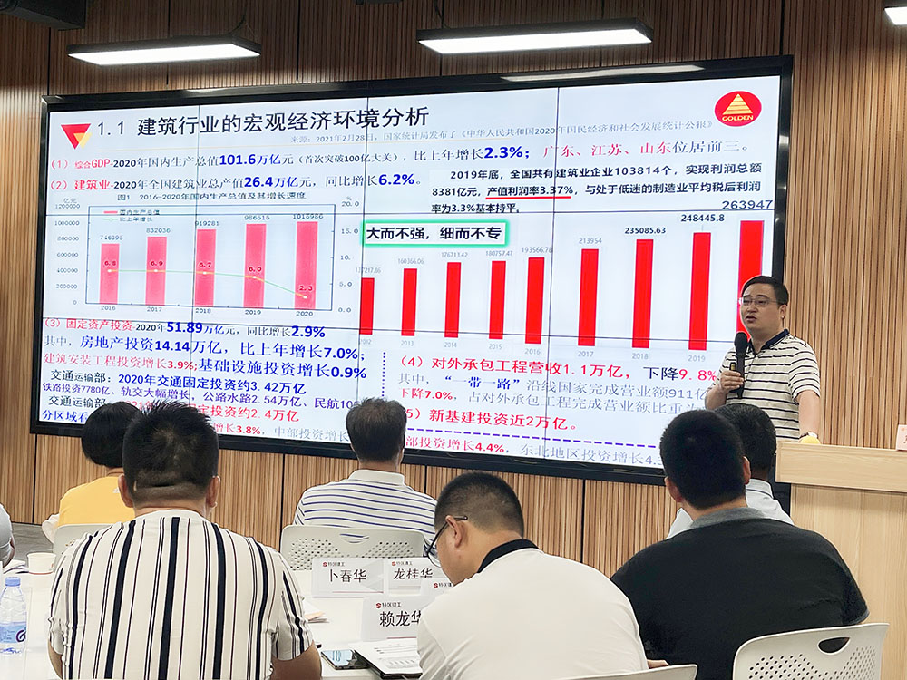 課堂上,熊老師介紹了建筑行業(yè)的宏觀經(jīng)濟(jì)環(huán)境、細(xì)分市場(chǎng)的發(fā)展趨勢(shì)、建筑行業(yè)政策環(huán)境的變化以及十四五戰(zhàn)略規(guī)劃,通過(guò)理論教學(xué)、案例分析等方法引導(dǎo)學(xué)員積極思考,圍繞施工企業(yè)的戰(zhàn)略管理、項(xiàng)目管理、組織管理及人才管理四大方面,對(duì)“去機(jī)關(guān)化”組織變革與管理賦能創(chuàng)新、項(xiàng)目管理基礎(chǔ)夯實(shí)和降本增效的實(shí)踐思路做了詳細(xì)的剖析。