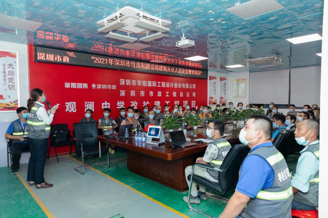龍華區(qū)觀瀾中學項目由天健市政總公司負責施工建設,市政總公司高度重視“送教進工地”活動的開展,積極組織具有豐富一線施工經驗的管理人員加入培訓團隊,提供培訓課件,助力培訓活動的順利開展,為各項目安全生產保駕護航。